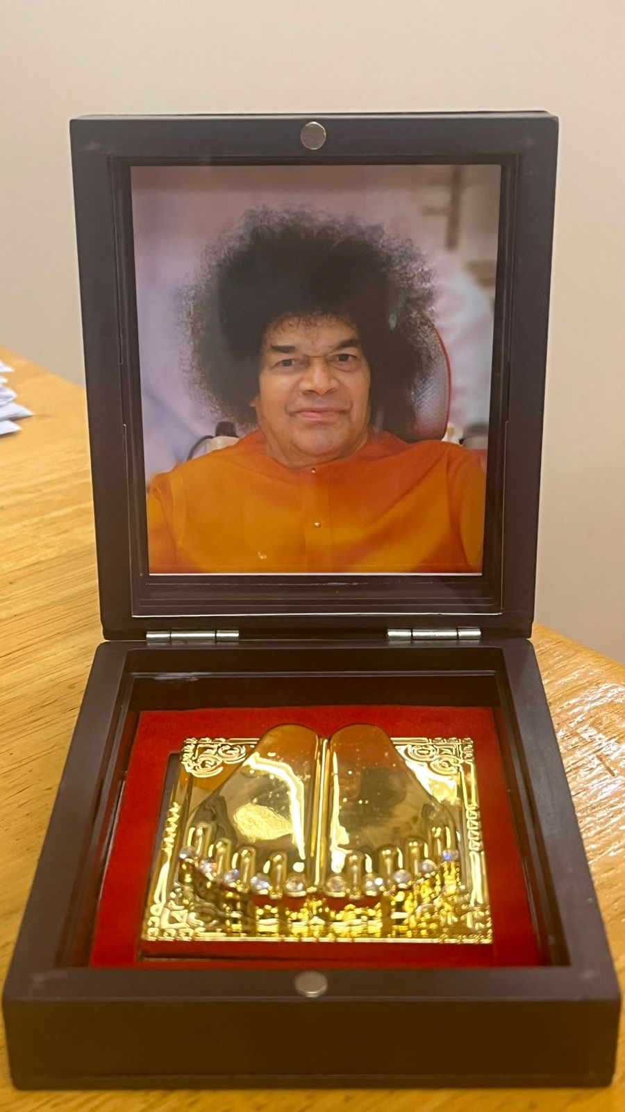The Padhuka Pooja Box is designed as a revered shrine for your home altar. These Padukas are worshipped as the Lotus Feet of our beloved Lord Sri Sathya Sai Baba. This beautiful crafted box can be used during your daily prayers, helping you hold on to His Feet for His grace and boundless blessings. Available in two convenient sizes - the compact 3"x3" and the majestic 3.5"x4.25" - you can select from various beautiful stills that evoke the divine presence and grace of Bhagawan.